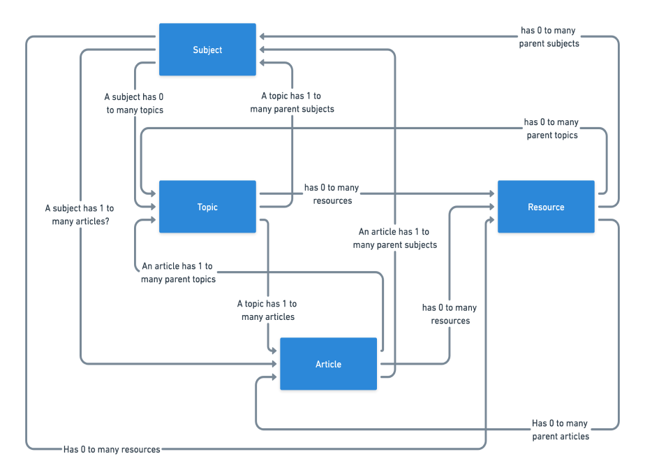 How do guides connect to subjects? Should articles link directly to resources? Establishing these relationships helped structure the content in a way that made sense to users.